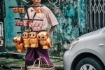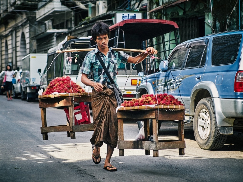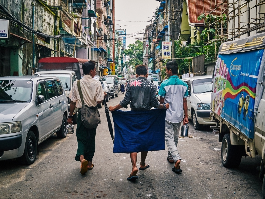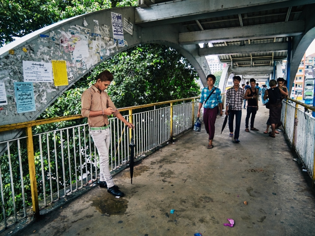 Na ulicach Rangun podobnie jak w całej Birmie nie ma zbyt wielu turystów. (Mimo to na najdłuższym drewnianym moście świata Ubein w Mandalaj, spotkaliśmy Polaka :) ) Birmańczycy wyróżniają się na tle innych narodów między innymi oryginalnym strojem oraz makijażem, który używają głównie Panie ale nie rzadko również Panowie. Mężczyźni zwykle są ubrani w tradycyjne Birmańskie Longyi. Wysoki pas materiału „bez końca”, zawiązany węzłem w okolicy pępka. Od czasu do czasu można spotkać jakiegoś „buntownika” w dżinsach lub spodenkach.