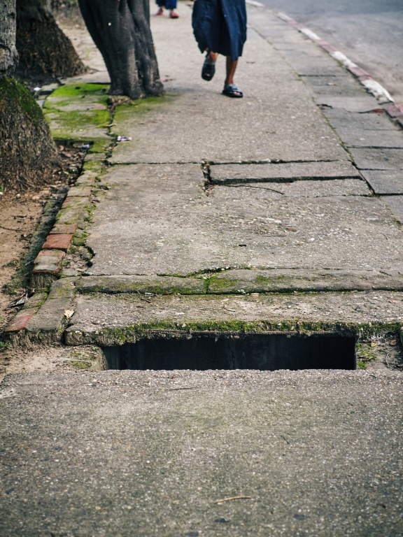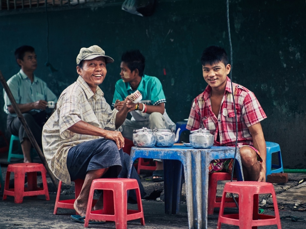 Miasto nie pachnie, wręcz śmierdzi. Śmieci też nie brakuje. Na ulicy dzieje się naprawdę dużo. Ludzie jedzą przy stolikach całymi grupami. Stoliki i krzesła z plastiku mają rozmiar dziecięcy i najczęściej są mocno wyeksploatowane. Przy podobnych stolikach pija się herbatkę z aluminiowego czajnika. Dookoła zniszczone budynki powstałe w czasach kolonialnych, pamiątka po Brytyjczykach. W niektóre powoli wrasta dżungla.